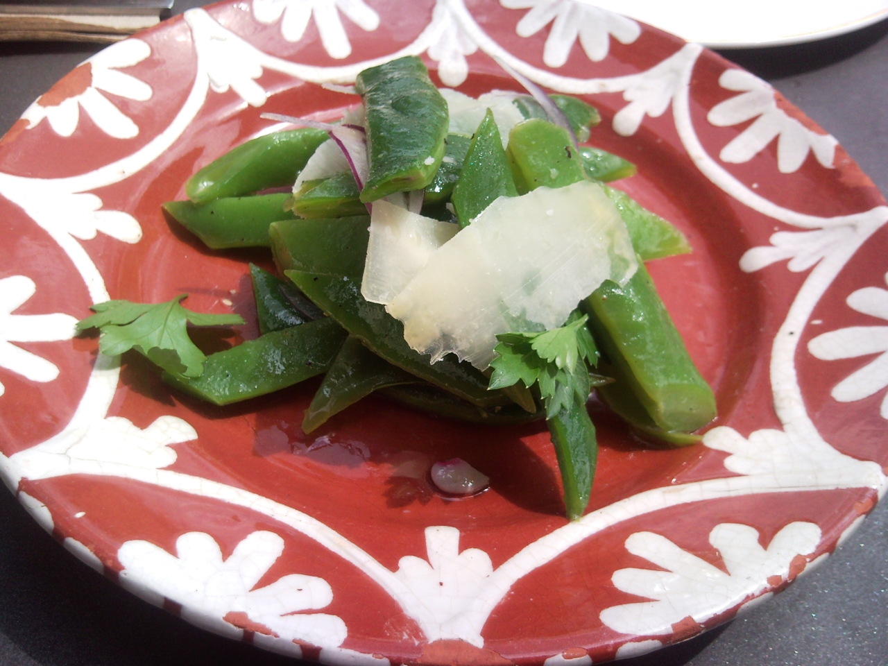 Runner bean, red onion & Berkswell salad