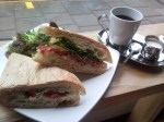 Delicious lunch at Massaro’s, Regent Street, Cambridge…ciabatta filled with fennel salami, fresh tomato, rocket and chunky homemade basil pesto!