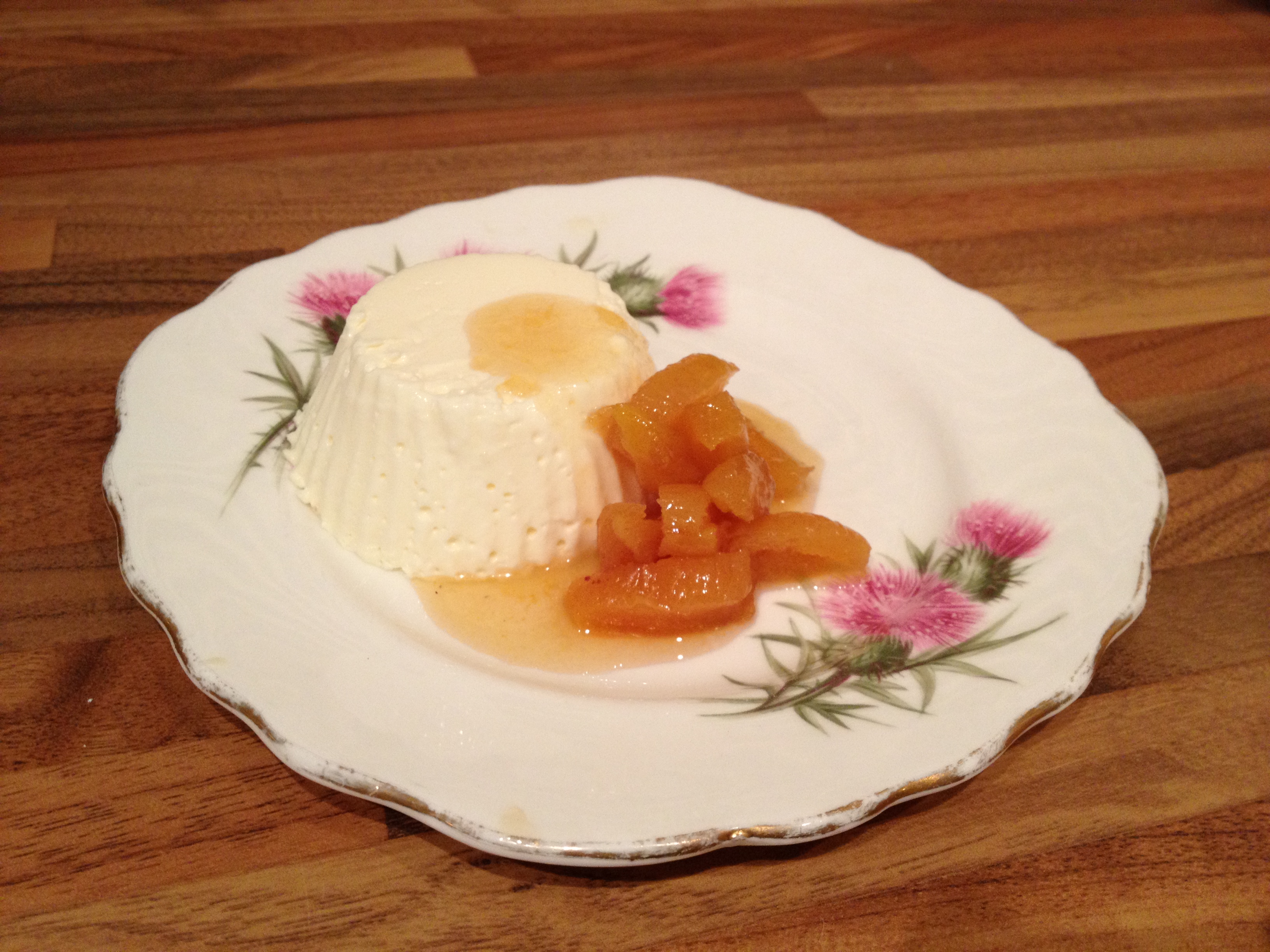 I thought I’d give you a taster of one of the desserts that I will be serving up…yoghurt panna cotta with honey glazed apricots…