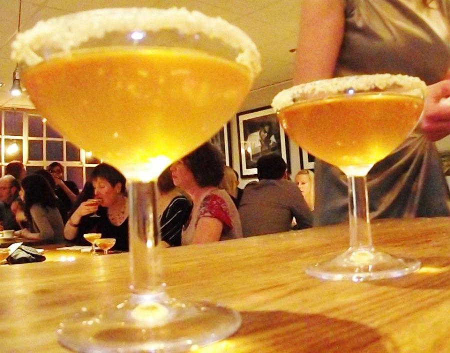 Rhubarb crumble martini