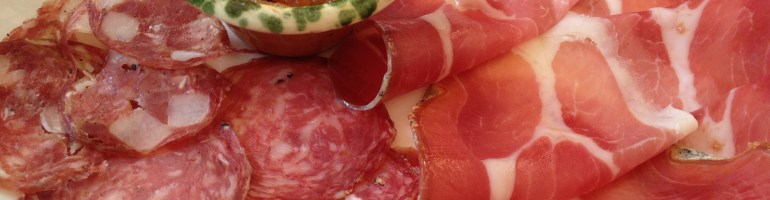 Eating a selection of Cinta Senese (an ancient Tuscan breed of pig) cold cuts…