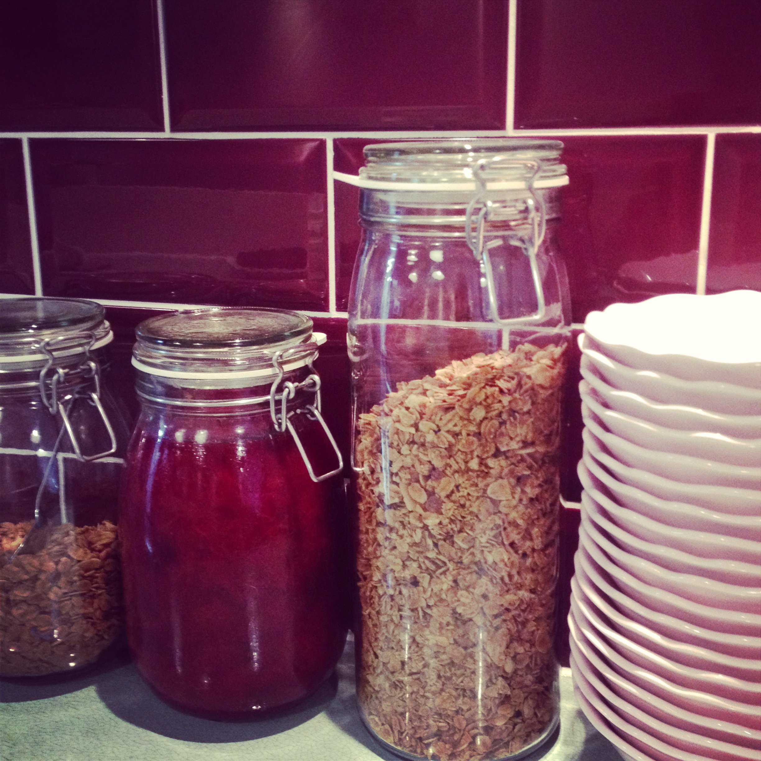 Rhubarb season has been very fruitful for me this year (apologies for such early pun usage). I’m lucky enough to know a lot of people who have been growing their own and I even discovered a little crop of my very own in the garden! I often make a delicious sticky rhubarb and ginger cake, which is a complete winner but I stumbled across this recipe on the BBC Good Food website for a rhubarb and custard cake and couldn’t resist having a go, with a couple of Afternoon Tease twists. Now is no time for modesty, I am happy to report that it turned out to be the most delicious cake, and fickle as I am, has overtaken all others as my current favourite! Behold my rhubarb and custard cake made with locally grown rhubarb and homemade custard…