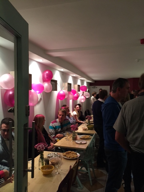 I’d decided that it’s be nice to have a little shindig at the cafe in the evening for some of the people (I couldn’t fit you all!) who had been important to our first year. I found it very hard to keep my invite list manageable but the ‘bijou’ proportions of the cafe helped me reign it in. Saying that, at one point it did feel like we were having some kind of competition to see just how many people we could get in…