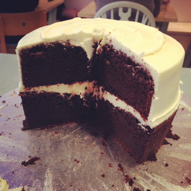 and I made a ginormous, two tiered chocolate stout cake using Mikkeller Beer Geek Breakfast, an oatmeal stout brewed with coffee!