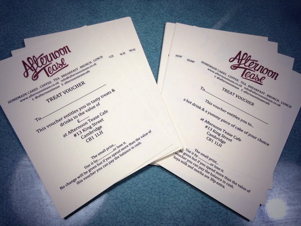 Now, last but not least…if you’re looking for a gift idea for that coffee/cake fiend in your life…look no further! We do treat vouchers