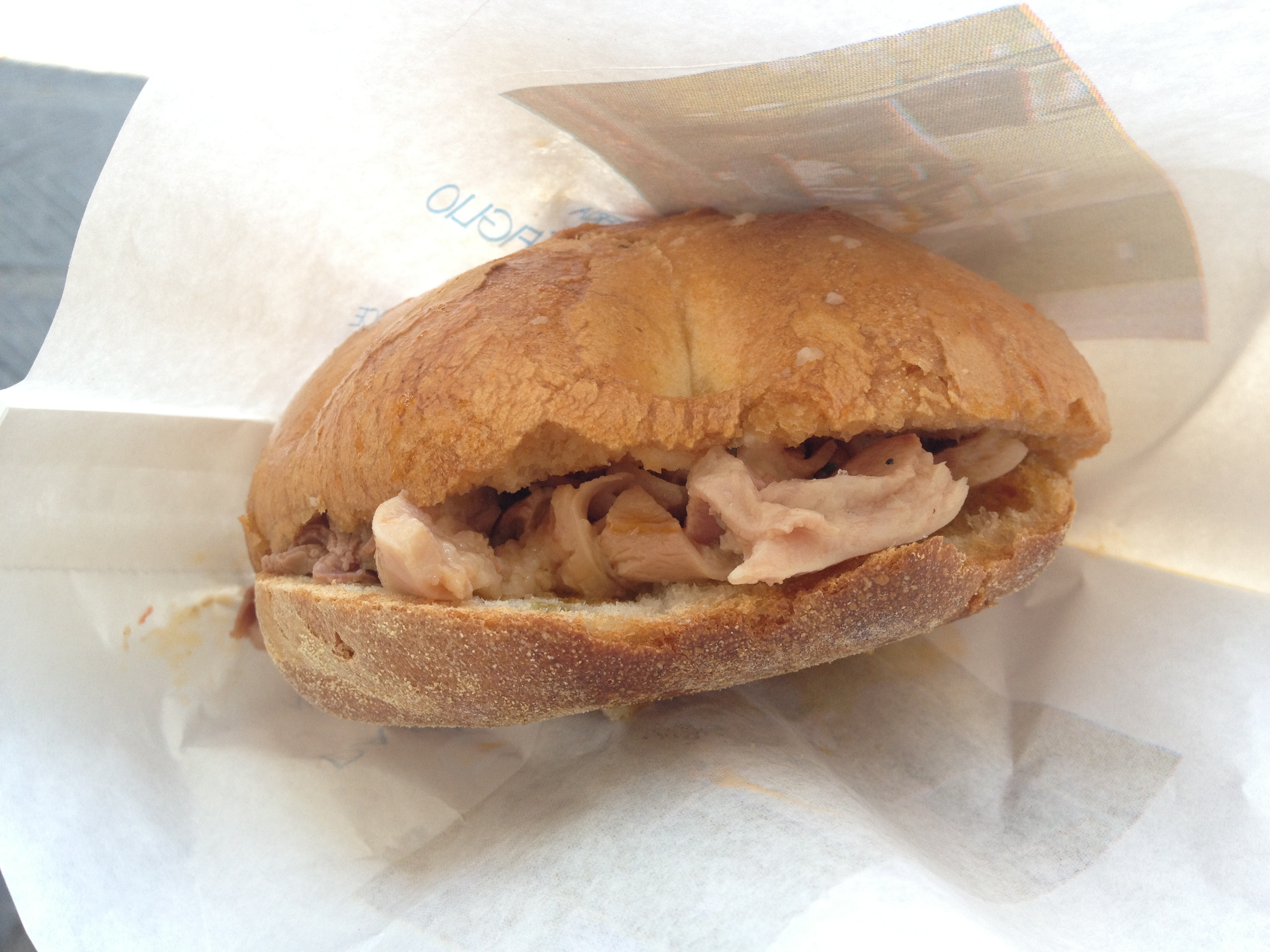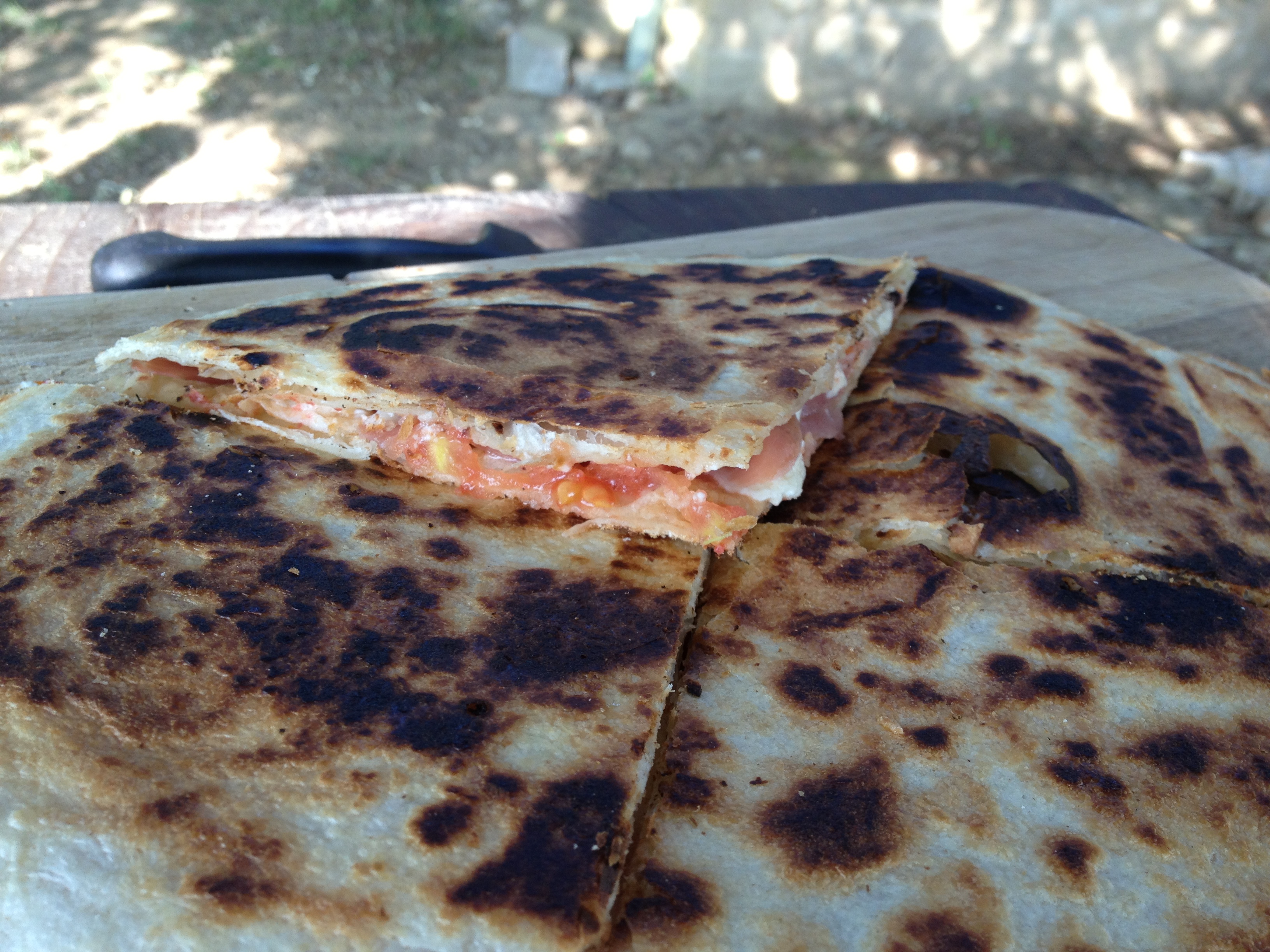 Now, you may think that eating a big breakfast before heading on a food tour of Florence is a bit of a silly idea but hey, we were here to eat, so eat we did. Breakfast #2 was a quesadilla…2 olive oil tortillas filled with fresh tomato, pecorino and speck with a special sprinkling of truffle salt, fried in butter (natch)…